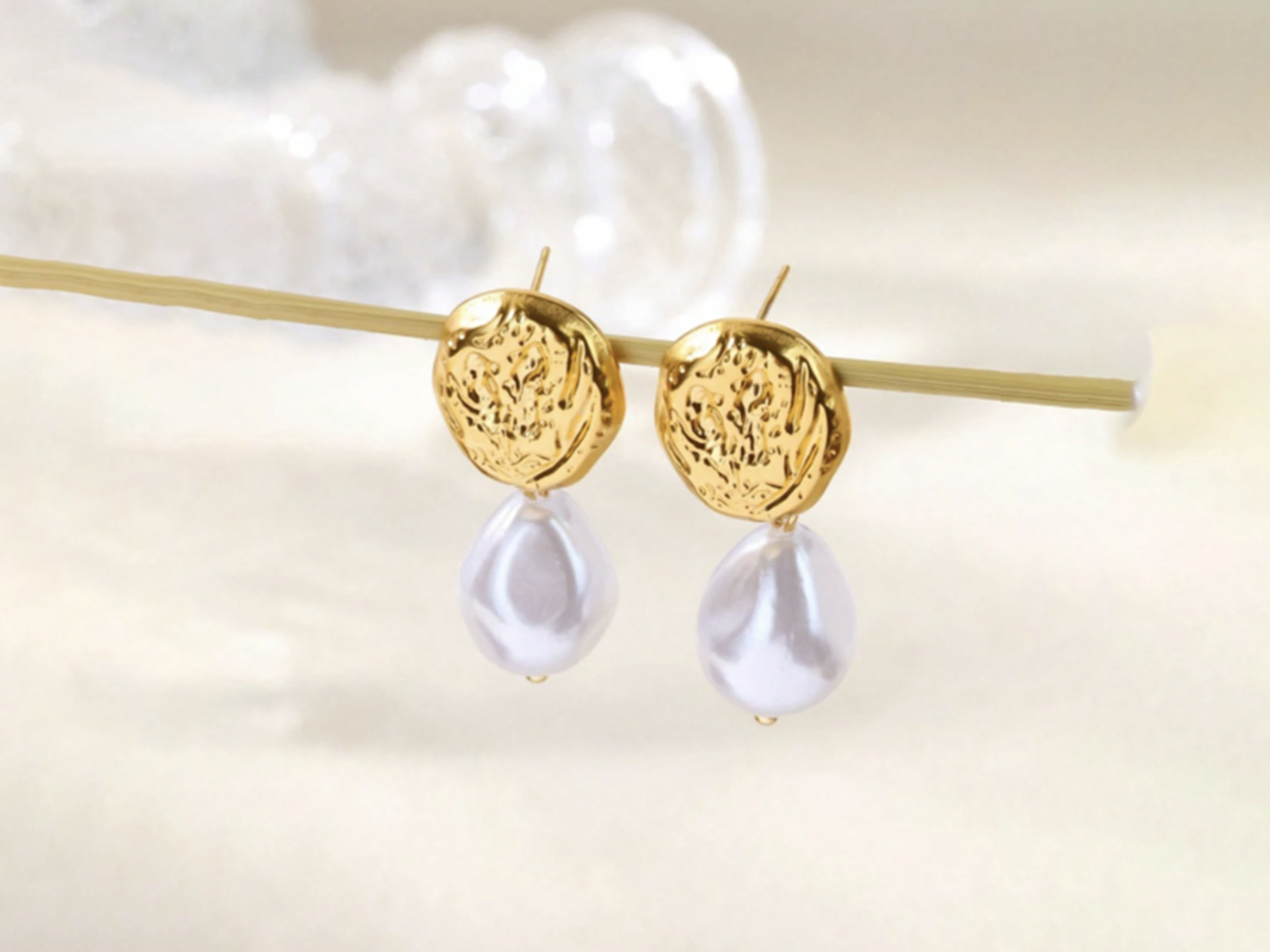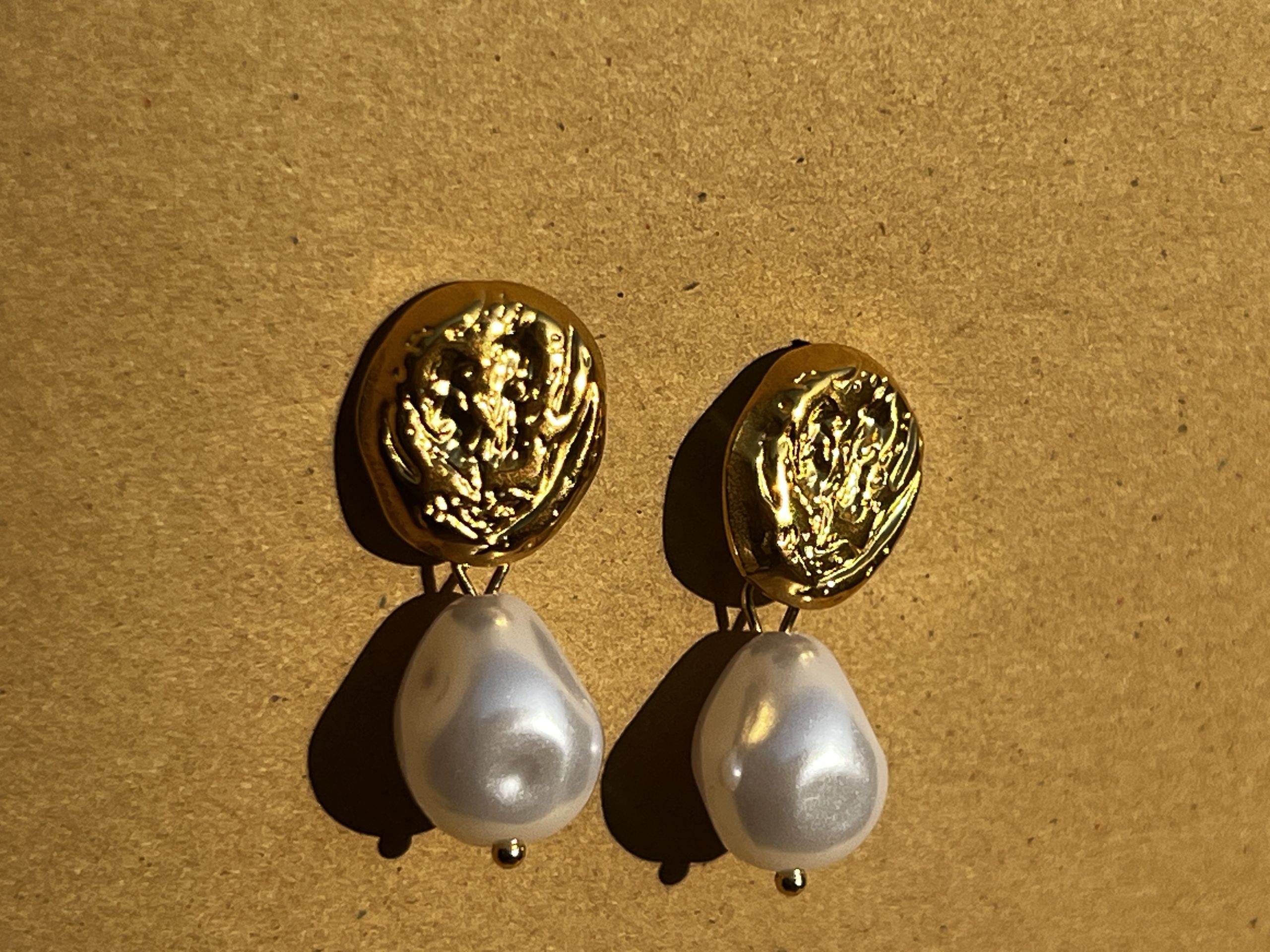 / Stainless Steel Minimalist Texture Pearl Earring